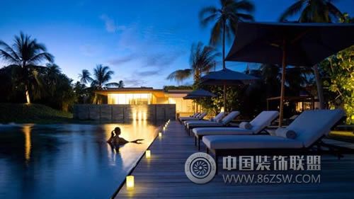 SCDA Architects设计的Alila Villas Hadahaa别墅度假村位于马尔代夫南部North Huvadhoo环礁上。Huvadhoo环礁堪称马尔代夫的最后一片净土,这里是全球最大的天然环礁之一,也是马尔代夫最深的环礁,中间的泻湖深达90米。尽管此环礁的规模很大,它却只包括250个岛屿,分散在面积为2800平方公里的泻湖区内。使之成为马尔代夫的岛屿分布最稀疏的环礁。