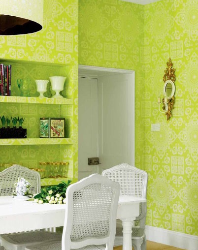 明亮的黄绿色有较强的情绪激励作用,有益于增进食欲,因此非常适合在餐厅、厨房一类的空间里使用,祝你精神百倍应对忙碌的一天。