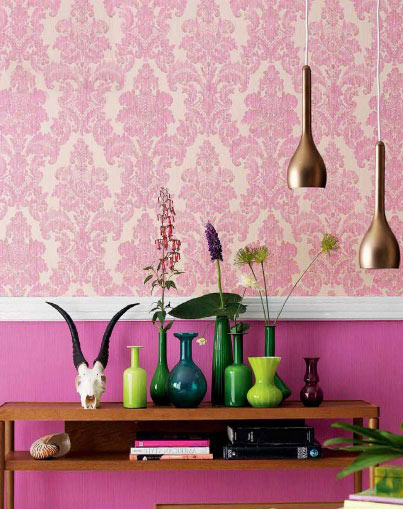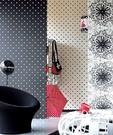 放弃纯色壁纸,转而选择五花八门的图案壁纸铺满四壁,可以为空间增添不少情趣。要注意如果墙面选用了花色图案的壁纸,家具最好选择造型简洁、色彩单纯的类型。
