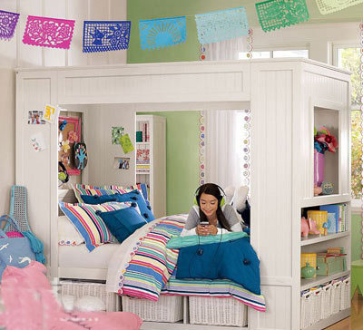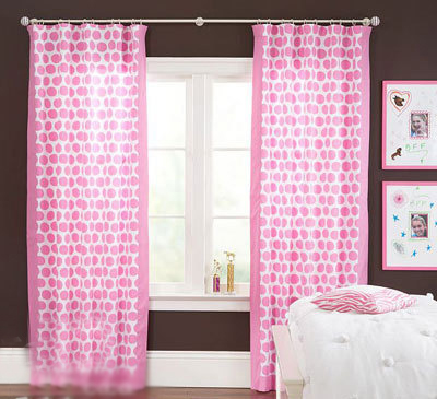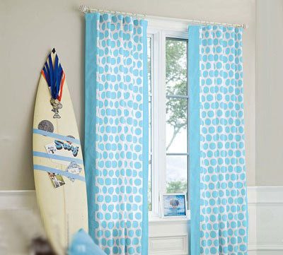 搭配点评:圆点、花纹等装饰图案,都特别适合女孩子的房间,因为此类图案都能突显出女孩子可爱甜美的气质。这个房间中选用了紫色圆点的窗帘图案,紫色能给人一种宁静内敛的感觉。边上用同色的直线条勾画出边框,恰好与旁边的紫色相框相呼应,形成宁静的空间气质。此款窗帘还有蓝色系列可选,蓝色则给人清新开朗的感觉。