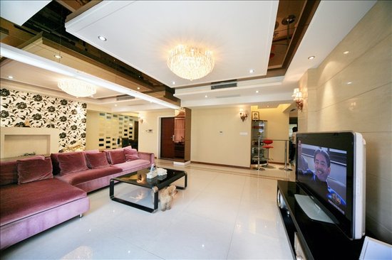 现代简约风格以其“简约但不简单”的理念越来越受到人们的喜爱与推崇。本案以纯白作为主色调,大量使用钢化玻璃与石材作为辅材,同时点缀一些时尚家居元素——晶莹透亮的水晶吊灯,优雅的香槟色镜面吊灯,气质非凡的紫色绒面沙发,呈现出主人的精致品味。在家居布置上,尽量选择柔软有质感的家具,表现出温馨、温暖的生活氛围。身处如此轻松自由的环境,对家的依恋会显得越发强烈。