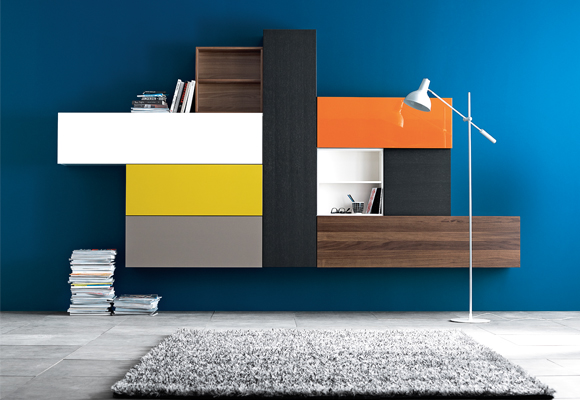 尽管是同样尺寸隔板的排列,但不同的色彩组合也让它变化出丰富的视觉效果,深浅色错层或渐变色的组合都是不错的搭配。
