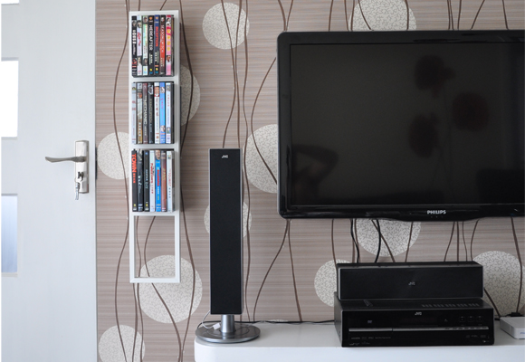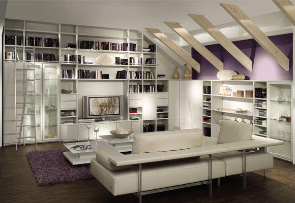 把整面墙利用起来,只要合理规划,利用柜子和搁板大小不一的尺寸巧妙进行组合,无论是电视机还是书柜都能一并收纳,成为最强大的功能的墙面收纳柜。