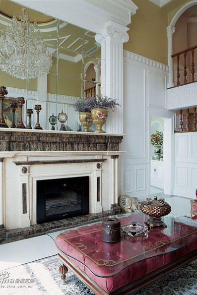 材质,于现代中赋予古蕴:常见的油画、壁炉、水晶宫灯、蕾丝垂幔是新古典风格的点睛之笔。壁炉可以设计一个真的壁炉,也可以设计一个壁炉造型,辅以灯光,营造生活情调。水晶宫灯传承着文化底蕴,静静泛着影影绰绰的灯光,朦胧、浪漫之感油然而生。罗马古柱可使整体空间通透起来了,也显得更加简洁有力。