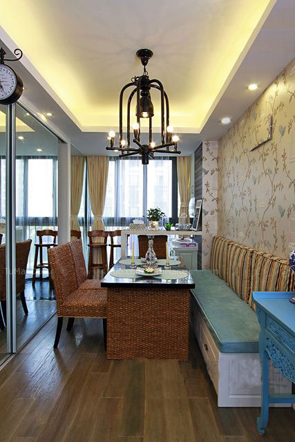 细节,生态饰品拙朴禅意:在饰品搭配上,经常可以看到的是最醒目的大红色的东南亚经典漆器,金色、红色的脸谱,金属材质的灯饰,如铜制的莲蓬灯,手工敲制出具有粗糙肌理的铜片吊灯,这些都是最具民族特色的点缀,能让空间散发出浓浓的异域气息,同时也可以让空间禅味十足,静谧而投射哲理。