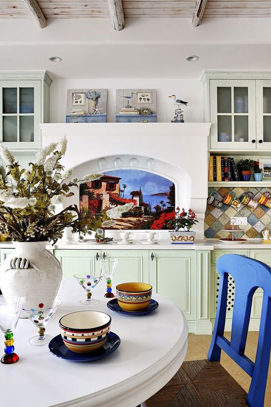 地中海家居风格以浪漫闻名,其最大魅力就是纯美的色彩组合,高饱和度的色调,将色彩最绚烂的一面表现得淋漓尽致。地中海风格设计中体现了“自由、悠闲”的生活方式,这些对于生活在钢筋水泥丛林中的我们来说绝对是一种享受。