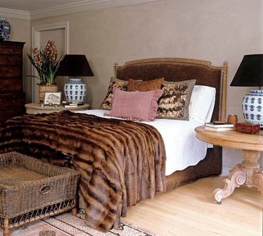 松软的皮草,向来是营造高贵华丽风格不可或缺的一部分,搭配优雅的蕾丝、轻盈的羽毛和略带野性的豹纹,共同去营造浓浓的暖意,令整个卧室充满浪漫气息。