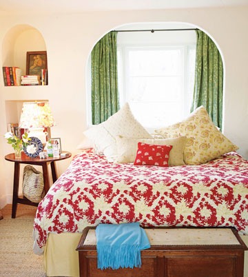 热情的红色与花纹结合,流露出独有的古典美感,配合那些柔软而富有弹性的靠包,走进这间卧室的人恐怕都会忍不住想与之亲密互动番。