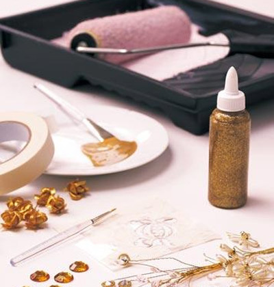 漆艺保分色胶带、(迷你)滚刷、托盘、铅笔、剪刀、美纹纸、羊毛刷、小饰品、胶水。