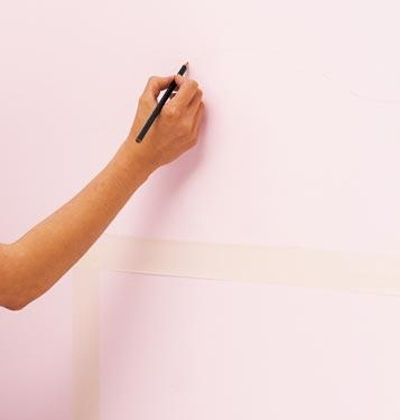 用铅笔勾勒手绘图案轮廓用淡色的铅笔,在具有底色的墙面上勾勒手绘图案的轮廓。