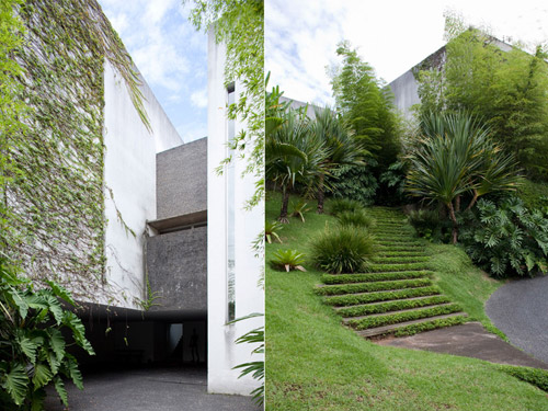 其实房屋原本是以混凝土建成的,后来逐渐地被不同茂盛的爬行植物所覆盖,在表面形成了各式各样的阴影形状。建筑师在房屋的四周都种满了各种繁盛生长的树木,就连台阶也不例外,就像是打造了一个巨大无比的私人花园一样。