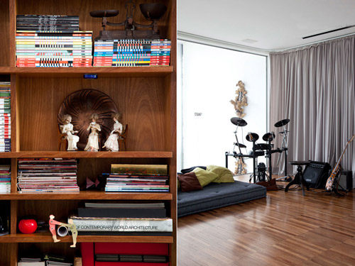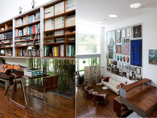住宅中每一件家具都是由建筑师亲手打造,让室内的设计更具特色。新近设计的家具仿古却又时尚,与建筑的设计保持着协调一致,精美的艺术收藏让这个空间更加的鲜艳多彩,展现着一种圣保罗的生活姿态。