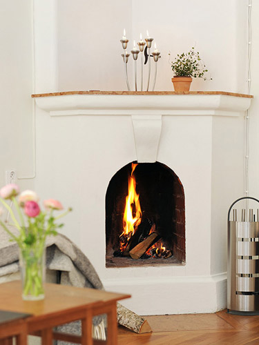 如果想欧洲风味更重的话,在客厅的角落添置一个壁炉,冬天的时候听着木柴燃烧时发出的“哔哔啪啪”声,别有一番风味。值得注意的是,燃烧木柴会让白色的墙壁粘上木炭黑色颗粒,比较难清洗,所以墙壁在选择油漆时要注意油漆的防污功能。