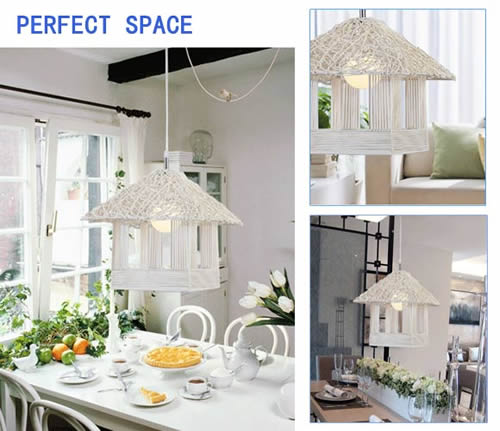 白藤木鸟巢形状的挂灯清新自然,符合了当代美式别墅控们的要求,增加心里对春暖的愉悦感。
