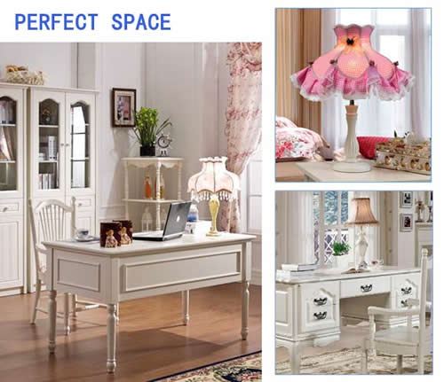 欧式田园风格的书房中有着那盏养眼的蕾丝布艺台灯,让你眼睛有好的适应光线。