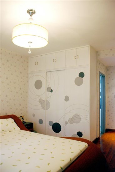 卧室的另一面是线条自然顺畅的三门衣柜,大小不一的圆点花纹简单而活泼,优雅的展现出主人非凡的气质。
