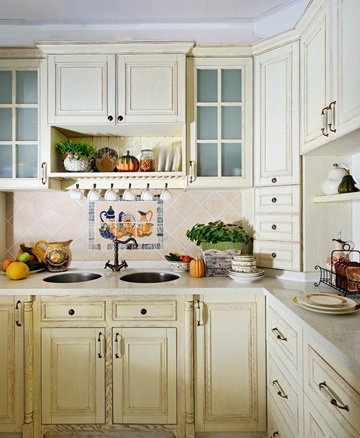 素雅的欧式厨房,点缀色彩丰富的瓜果蔬菜,顿时添了不少生机。