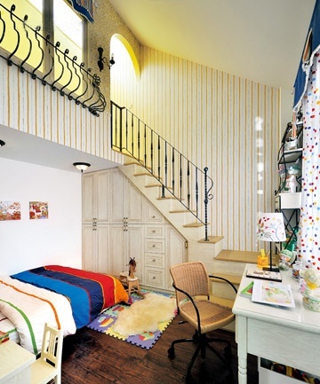 儿童房里的趣味阁楼,实现了空间的高利用率,同时也是孩子们再好不过的嬉戏场所。