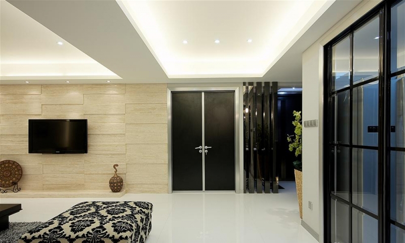 白色的地面和墙面门统一用黑色搭配非常融洽
