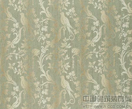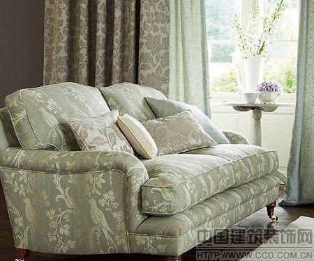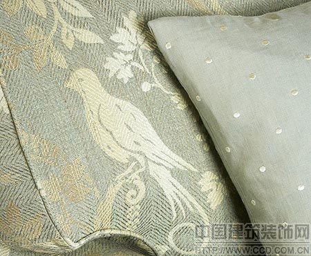 用预示幸福吉祥的青鸟图案反衬青绿色的沙发底色,再用繁花似锦的蔷薇与之呼应,两种材质相仿的材料让花和鸟的图案相互交融,原本不怎么相称的色彩也能融合的恰到好处。