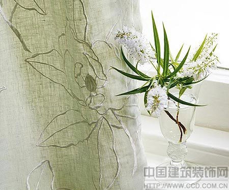 只有凑近时,才能看出窗帘中心的那一抹湖水绿。