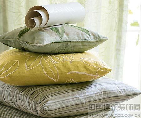 淡绿色、淡黄色、条纹、格纹等靠枕,都能搭配。