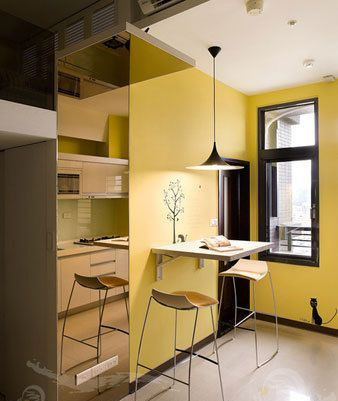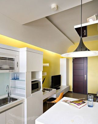 厨房设计以简单风格和功能齐全为主,有时单身生活的饮食结构稍显简单,也就不用花太多心思在烹饪上。