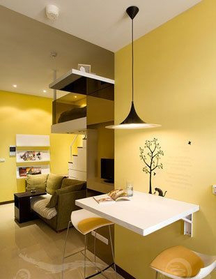 客厅采用最省空间的咖啡桌式茶几,适合一个人的慵懒下午。