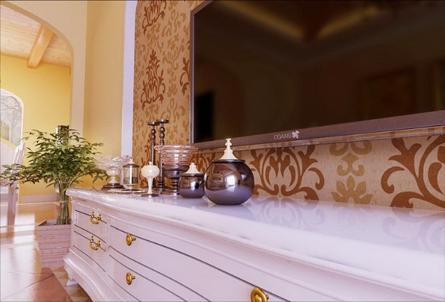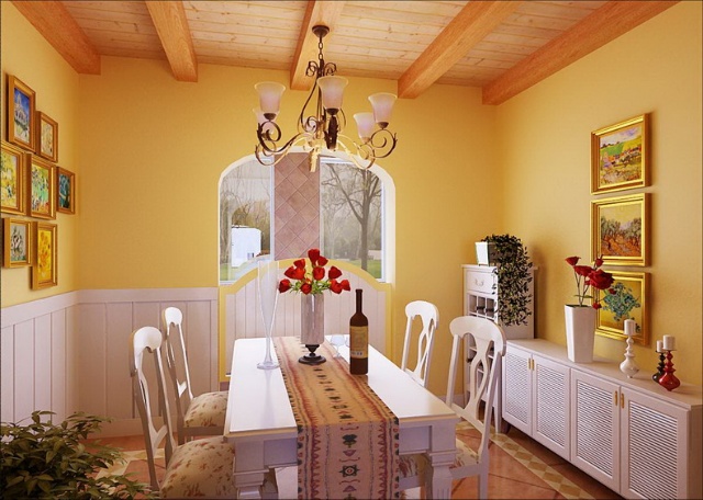 吊顶的装饰,丰富空间装饰效果,拱形造型的点缀,展露欧式田园情趣。