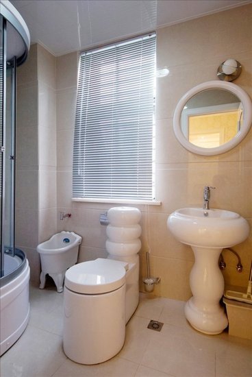 在确定了白色主基调后,卫生间设计选择了米色瓷砖加以铺陈,显得整洁清新又不失雅致格调。设计感很强的纯白卫浴简洁干净,活泼清爽,简单而实用。