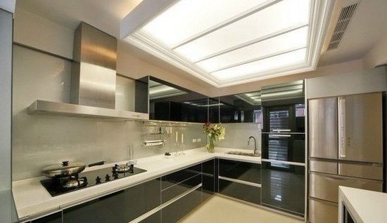 厨房油烟味重,灰尘常与油一起凝结在房间各处。于是采用了黑色的橱柜,避免了被灰尘覆盖后白色变黄的可能。金属质地的抽油烟机易于擦洗。