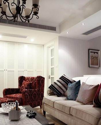 红色与白色的布艺沙发搭配,经典时尚,浅色实木地板就成为了中间的过渡色,结合了温馨和清雅的韵味,让居室更加亮丽脱俗。