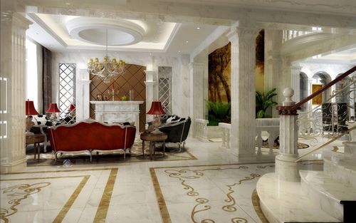 亮点:欧式古典风大理石的罗马柱、金属购花楼梯和大水晶灯打造非凡奢华气势。白、金、大红的色彩搭配更是让客厅富丽堂皇不已。大理石栏杆围出的小花园很惊艳,仿佛把大自然带到家里来了,尊贵中不乏清新。