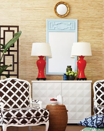 简单的油漆工程,轻松改变家中面貌。镜子、台灯和其他家具都被重新上了色。
