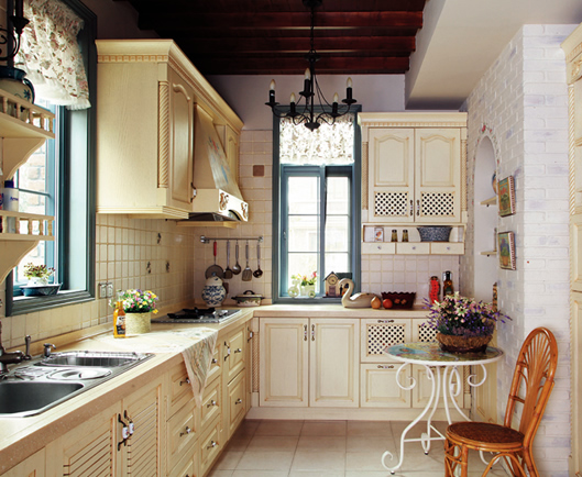 实木橱柜令厨房变得越发平易近人。浅淡的色彩也在无形中放大了整体空间。