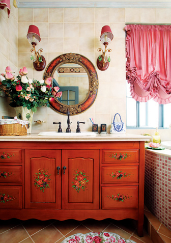 主卫虽然免不了冷冰冰的浴具,多摆上一盆花,就能让暖意瞬间绽放。