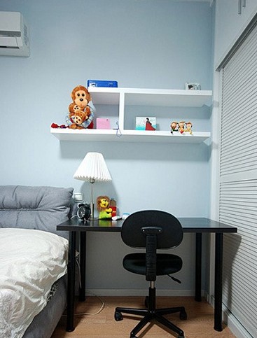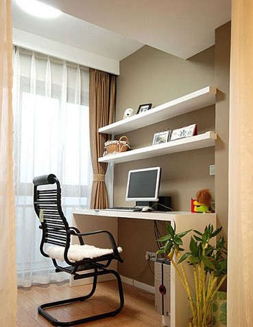 书房一角,地板没有选择很夸张的颜色,偏向原木色