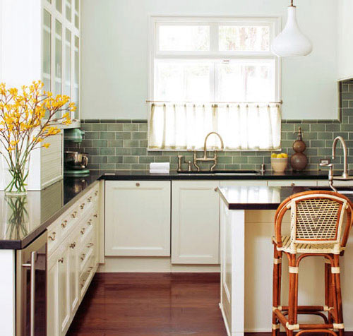 厨房所处的位置相对封闭独立,但采光依然出色,透过法式窗户可直接看到院子里的景色。