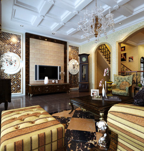 蓝白清新马赛克 装扮时尚简约家居生活简约客厅装修图片
