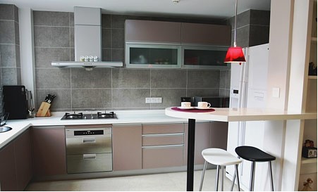 橱柜的颜色有点偏淡粉