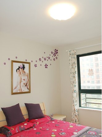 主卧 简约的白墙壁上有花朵墙贴做点缀