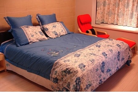 最后看看次卧室的大床,买的曲美家特价的床和床头柜