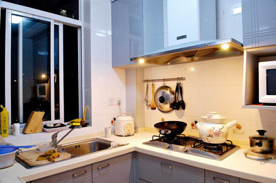 吊柜的承载力一般不如下柜,所以吊柜内适合放置比较轻的物品,如调味罐及玻璃杯等重物最好放在下柜里;器皿应该清洗干净后再放入柜中,特别要注意的是要把器皿擦拭干;橱柜中的五金件用干布擦拭,避免水滴留在其表面造成水痕;料理台的水槽可以事先用细丝兜住内部滤盒,防止菜屑及细小残渣堵住水管。
