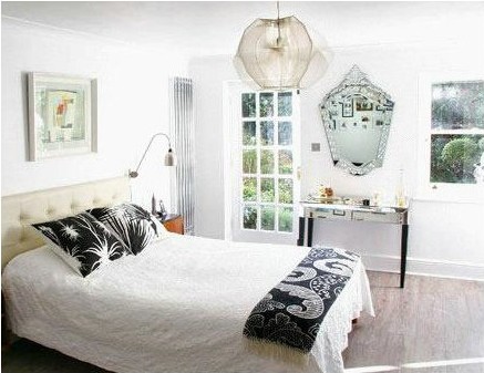 略带北非风格卧室里,具有传统的印度气质的梳妆镜成为视线所及之处的焦点。而下方现代风格梳妆台的金属质感与镜子的肌理应和,将居室的氛围推高到极致。
