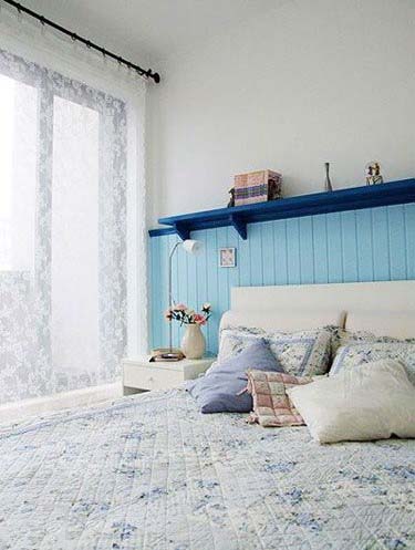 没有刻意统一屋子二楼三间卧室的风格。而是按照每个人的性格做了不同的安排。母亲从前是医务工作者,要求房间要简单,干净就好。可是干净不代表没有变化,设计了淡蓝的书架,摆上喜欢看的书。早晨阳光从落地窗户里洒进来,透过蕾丝窗帘照亮了整个房间。