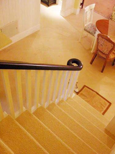 楼梯女主人选了白色和巧克力色搭配,转角的圆圈象极了巧克力圈圈面包,小女孩的甜蜜梦想。