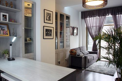 二楼搭建了平台,作为书房的使用区,使得在书房的设计上能够满足大气的效果,并增加了书房的储藏量;