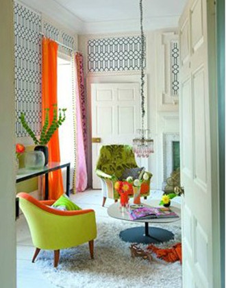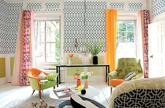 在田园风格所有的细节设计中,布艺的领袖地位无法撼动。它的图案、色彩直接决定了居室的定位,密集图案的黑白色壁纸,配合着飘逸的布艺沙发及窗帘,将居室衬托得十分明亮。