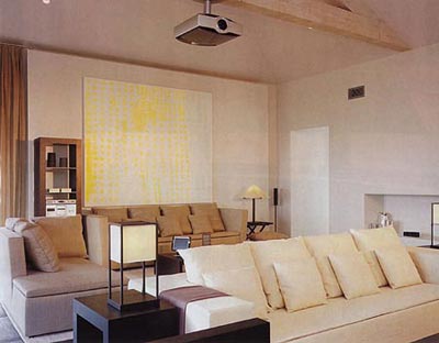 一个三人沙发加茶几的摆放方式太规整,于是就灵活加入两个散件来制造变化。三人沙发和茶几的造型设计都很时尚,这里加入的散件是一个风格类型接近的坐椅。坐椅不大,可以方便地在沙发周围搬动,打破固定的客厅感觉。散件通常可以视沙发造型选择坐垫、脚凳、扶手椅等简单家具,不适合加入块头大的家具,否则小客厅就很拥堵了。