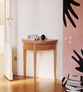 小台桌:在家居市场上有一些专门为家用电话而设计的小台桌,而且还内含储藏功能,或是附带一张座台,既可当椅子使用,也可用来放置电话簿。